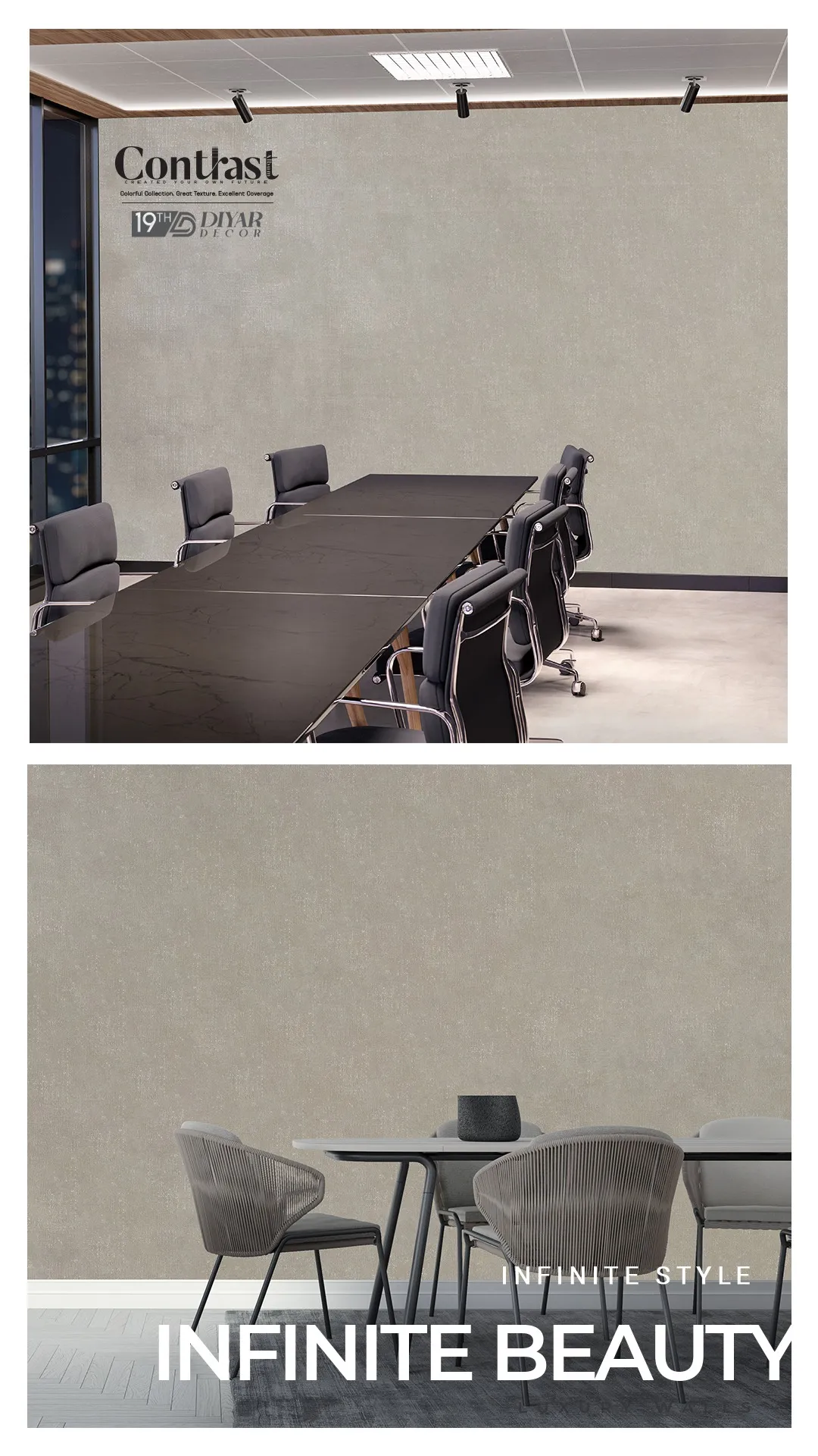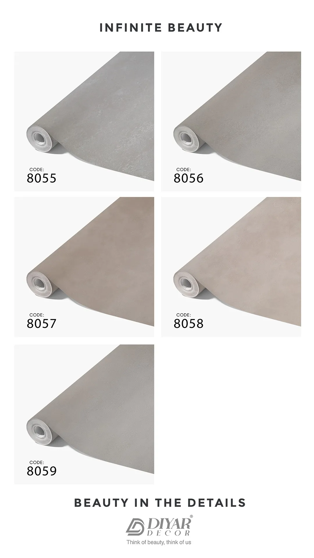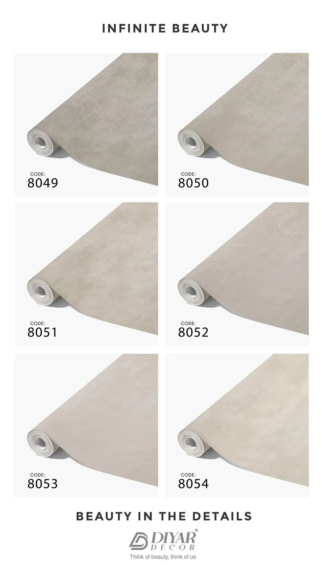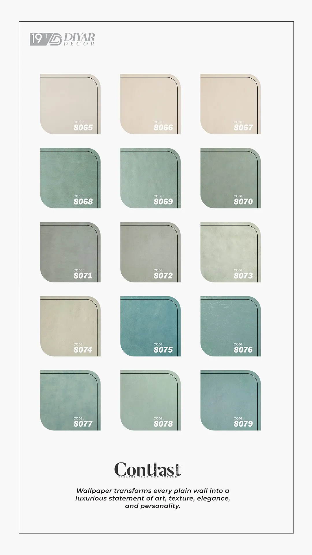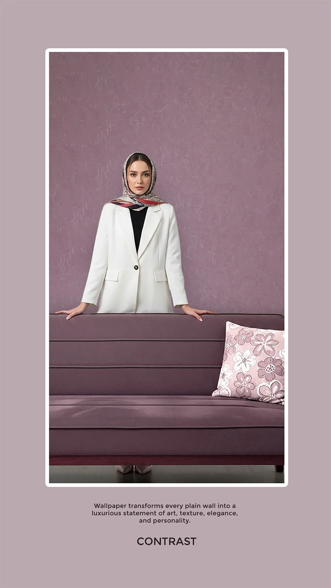بسیاری از آلبوم‌های کاغذ دیواری، طرح‌های شلوغ و گل‌دار دارند، اما کنتراست مسیر متفاوتی را انتخاب کرده است. این مجموعه روی رنگ‌های خالص و بافت‌های برجسته تمرکز دارد؛ همین موضوع باعث می‌شود فضای داخلی شیک‌تر، منظم‌تر و چشم‌نوازتر دیده شود.