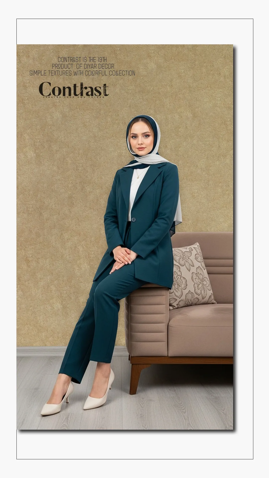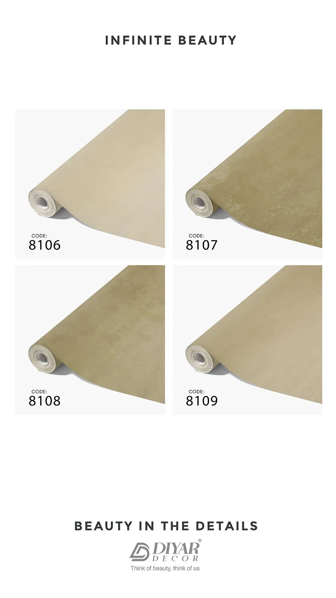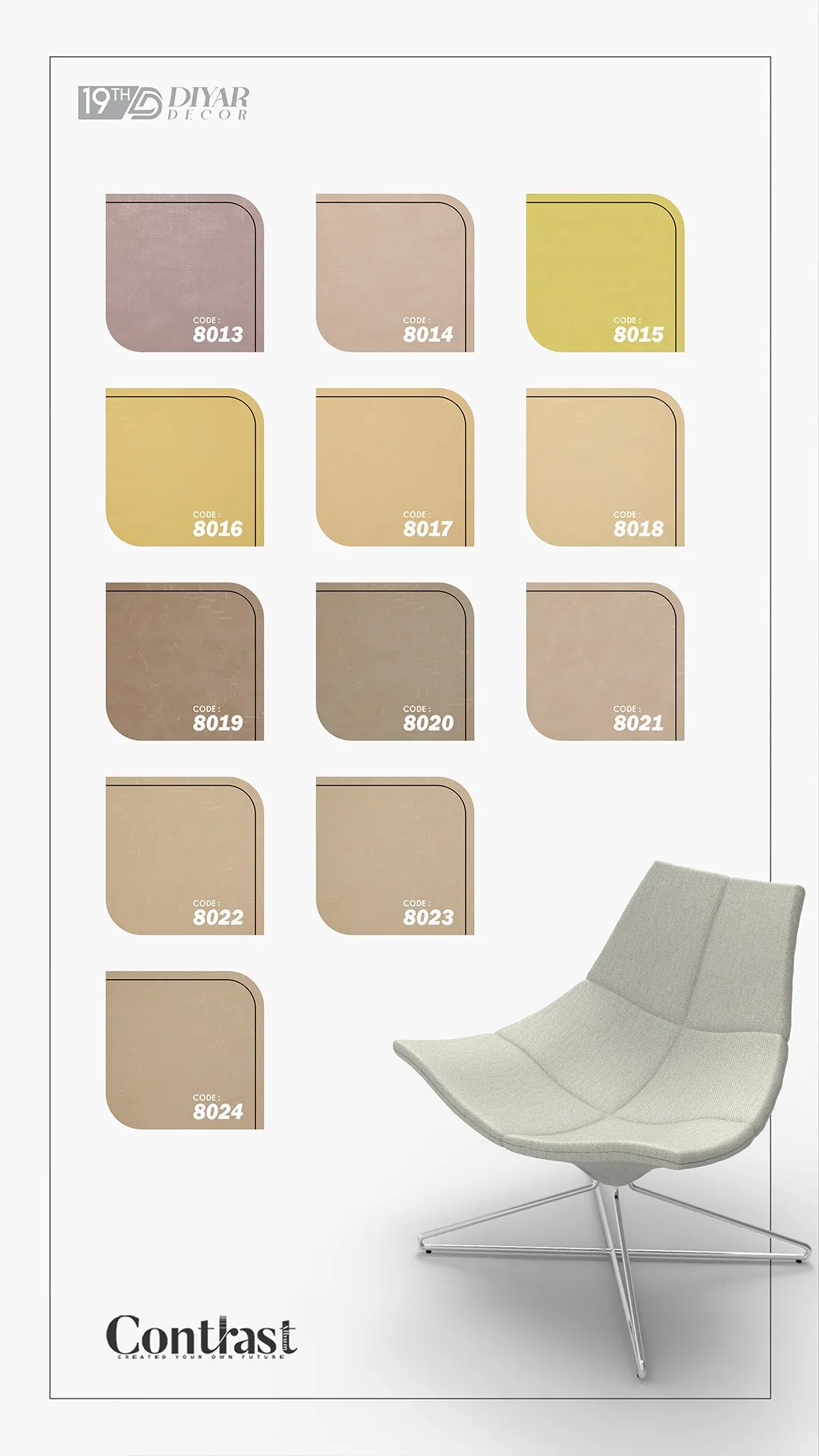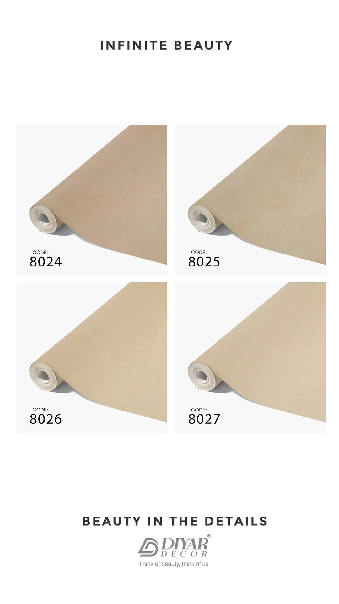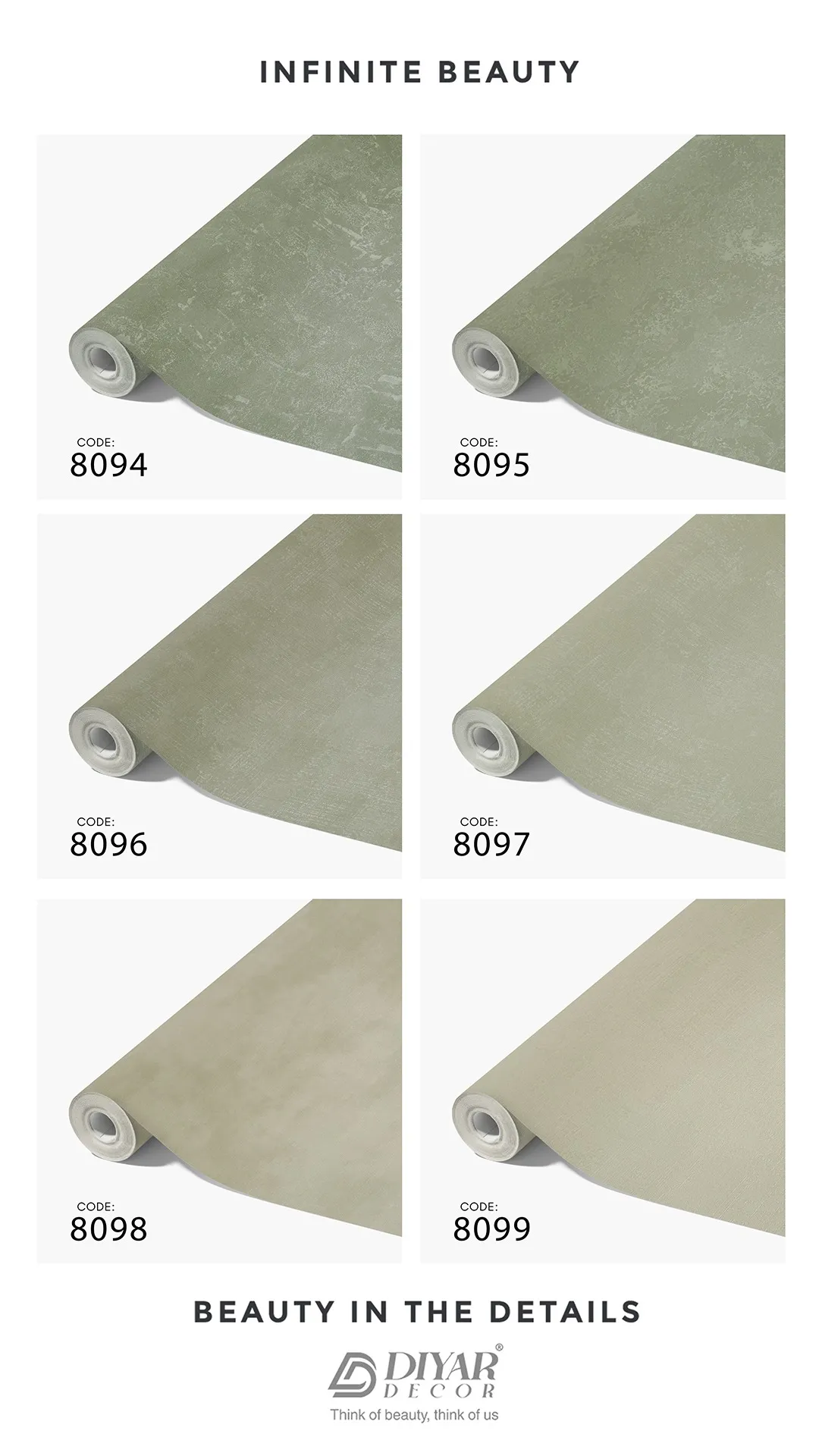 بسیاری از آلبوم‌های کاغذ دیواری، طرح‌های شلوغ و گل‌دار دارند، اما کنتراست مسیر متفاوتی را انتخاب کرده است. این مجموعه روی رنگ‌های خالص و بافت‌های برجسته تمرکز دارد؛ همین موضوع باعث می‌شود فضای داخلی شیک‌تر، منظم‌تر و چشم‌نوازتر دیده شود.