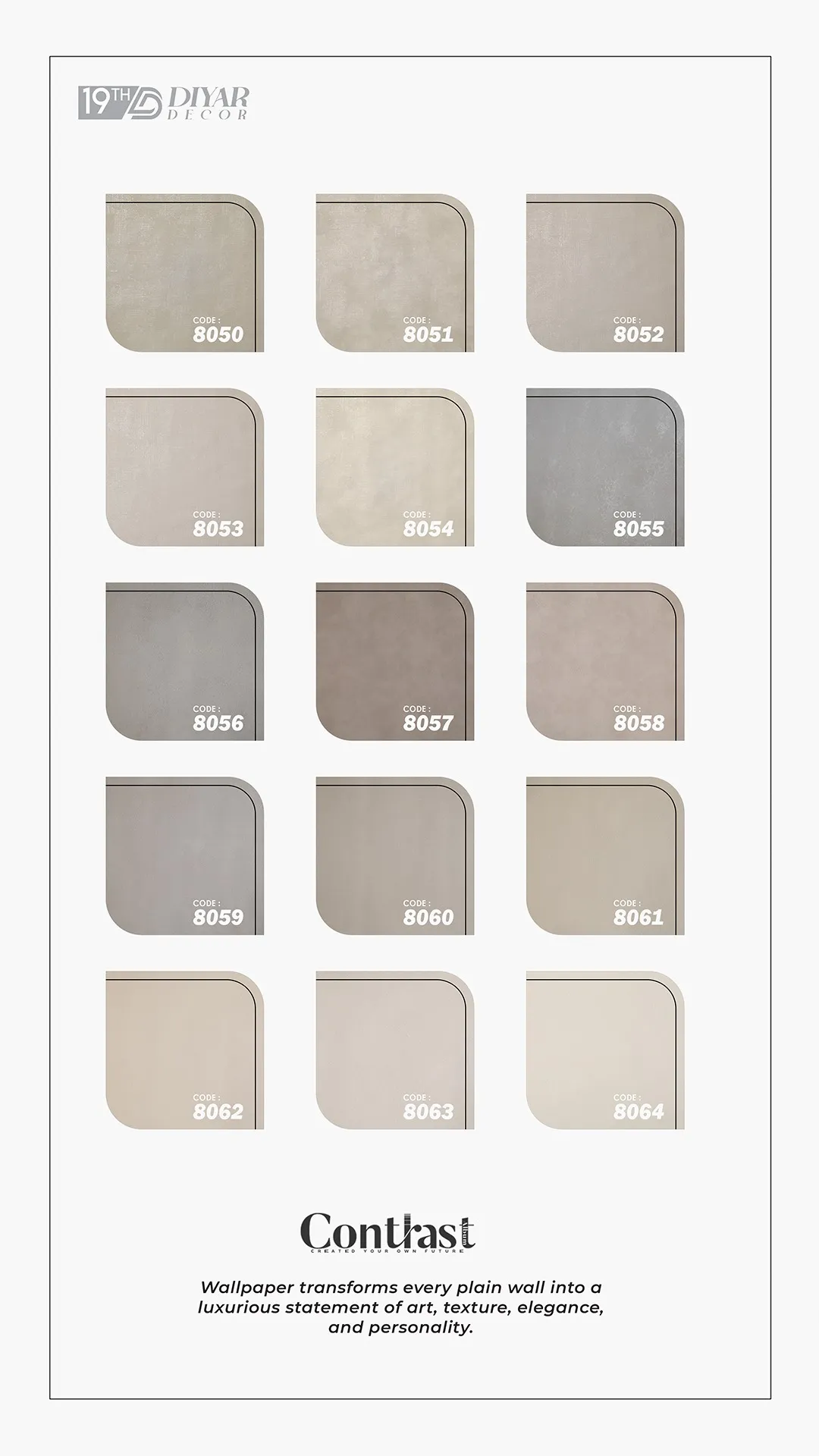 آلبوم کاغذ دیواری کنتراست یکی از خاص‌ترین محصولات دکوراسیون داخلی است که تمرکز اصلی آن روی صفحات تک‌رنگ با بافت‌های جذاب و چشم‌نواز می‌باشد. این آلبوم مخصوص افرادی طراحی شده که می‌خواهند فضایی آرام، شیک، منظم و کاملاً مدرن بسازند. اگر به سبک‌های مینیمال، نئوکلاسیک یا دکورهای ساده و لوکس علاقه دارید، کنتراست انتخاب ایده‌آلی برای شماست.