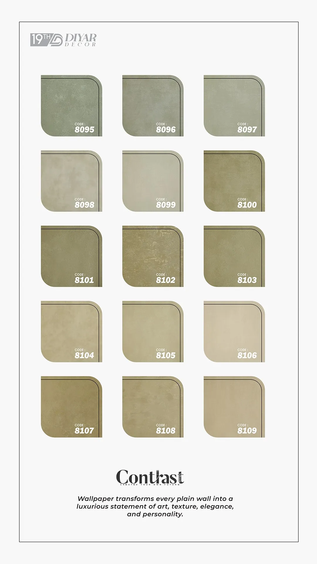 آلبوم کاغذ دیواری کنتراست | مجموعه‌ای از صفحات تک‌رنگ با بافت‌های مدرن و لوکس